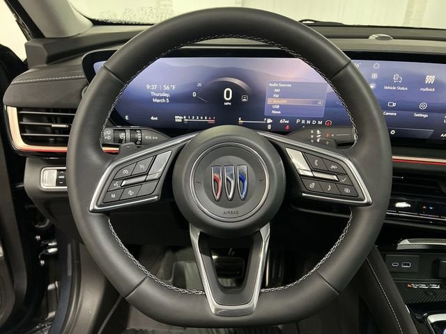 Quartz Blue Metallic 3-Channel Programmable Universal Home Remote, 3.47 Final Drive Axle Ratio, 30 Diagonal LCD Display, 4-Wheel Disc Brakes, 9 Speakers, ABS brakes, Air Conditioning, Air Quality Indicator Sensor, Alloy wheels, AM/FM radio: SiriusXM, Auto High-beam Headlights, Auto-dimming door mirrors, Auto-dimming Rear-View mirror, Automatic Air Recirculation, Automatic temperature control, Bose Premium 9-Speaker Audio System Feature, Brake assist, Bumpers: body-color, Cargo Liner, Comfort and Convenience Package, Compass, Delay-off headlights, Driver 4-Way Power Lumbar Seat Adjuster, Driver 8-Way Power Seat Adjuster, Driver door bin, Driver vanity mirror, Dual front impact airbags, Dual front side impact airbags, Dual-Zone Automatic Climate Control Air Conditioning, Ebony 1st and 2nd Rows All-Weather Floor Liners (LPO), Electronic Stability Control, Emergency communication system: OnStar and Buick connected services capable, Exterior Parking Camera Rear, Four wheel independent suspension, Front anti-roll bar, Front Bucket Seats, Front Center Armrest, Front Passenger 6-Way Manual Seat Adjuster, Front reading lights, Fully automatic headlights, Hands-Free Power Programmable Liftgate, Heads-Up Display, Heated door mirrors, Heated Driver and Front Passenger Seats, Heated Steering Wheel, Illuminated entry, Interior Protection Package, Knee airbag, Leather steering wheel, Low tire pressure warning, Memory seat, Navigation System, Occupant sensing airbag, Outside temperature display, Overhead airbag, Overhead console, Panic alarm, Passenger door bin, Passenger vanity mirror, Perforated Leather-Appointed Seat Trim, Power door mirrors, Power driver seat, Power Liftgate, Power steering, Power windows, Premium audio system: Buick Infotainment System, Radio data system, Radio: Infotainment Center, Rear anti-roll bar, Rear reading lights, Rear seat center armrest, Rear window defroster, Rear window wiper, Remote keyless entry, Security system, SiriusXM Trial Subscription, Speed control, Split folding rear seat, Spoiler, Sport steering wheel, Steering wheel mounted audio controls, Telescoping steering wheel, Tilt steering wheel, Traction control, Trip computer, Variably intermittent wipers, Wheels: 20 Carbon Flash Metallic Alloy, Wireless Apple CarPlay/Wireless Android Auto. 2026 Buick Envision Sport Touring AWD 9-Speed Automatic 2.0L Turbocharged