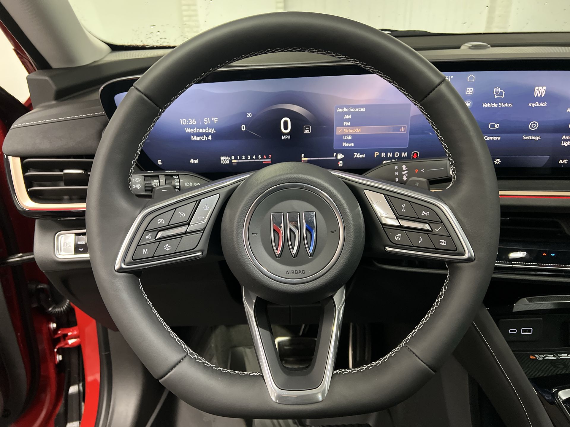 Brilliant Red 3-Channel Programmable Universal Home Remote, 3.47 Final Drive Axle Ratio, 30 Diagonal LCD Display, 4-Wheel Disc Brakes, 9 Speakers, ABS brakes, Air Conditioning, Air Quality Indicator Sensor, Alloy wheels, AM/FM radio: SiriusXM, Auto High-beam Headlights, Auto-dimming door mirrors, Auto-dimming Rear-View mirror, Automatic Air Recirculation, Automatic temperature control, Bose Premium 9-Speaker Audio System Feature, Brake assist, Bumpers: body-color, Cargo Liner, Comfort and Convenience Package, Compass, Delay-off headlights, Driver 4-Way Power Lumbar Seat Adjuster, Driver 8-Way Power Seat Adjuster, Driver door bin, Driver vanity mirror, Dual front impact airbags, Dual front side impact airbags, Dual-Zone Automatic Climate Control Air Conditioning, Ebony 1st and 2nd Rows All-Weather Floor Liners (LPO), Electronic Stability Control, Emergency communication system: OnStar and Buick connected services capable, Exterior Parking Camera Rear, Four wheel independent suspension, Front anti-roll bar, Front Bucket Seats, Front Center Armrest, Front Passenger 6-Way Manual Seat Adjuster, Front reading lights, Fully automatic headlights, Hands-Free Power Programmable Liftgate, Heads-Up Display, Heated door mirrors, Heated Driver and Front Passenger Seats, Heated Steering Wheel, Illuminated entry, Interior Protection Package, Knee airbag, Leather steering wheel, Low tire pressure warning, Memory seat, Navigation System, Occupant sensing airbag, Outside temperature display, Overhead airbag, Overhead console, Panic alarm, Passenger door bin, Passenger vanity mirror, Perforated Leather-Appointed Seat Trim, Power door mirrors, Power driver seat, Power Liftgate, Power steering, Power windows, Premium audio system: Buick Infotainment System, Radio data system, Radio: Infotainment Center, Rear anti-roll bar, Rear reading lights, Rear seat center armrest, Rear window defroster, Rear window wiper, Remote keyless entry, Security system, SiriusXM Trial Subscription, Speed control, Split folding rear seat, Spoiler, Sport steering wheel, Steering wheel mounted audio controls, Telescoping steering wheel, Tilt steering wheel, Traction control, Trip computer, Variably intermittent wipers, Wheels: 20 Carbon Flash Metallic Alloy, Wireless Apple CarPlay/Wireless Android Auto. 2026 Buick Envision Sport Touring AWD 9-Speed Automatic 2.0L Turbocharged