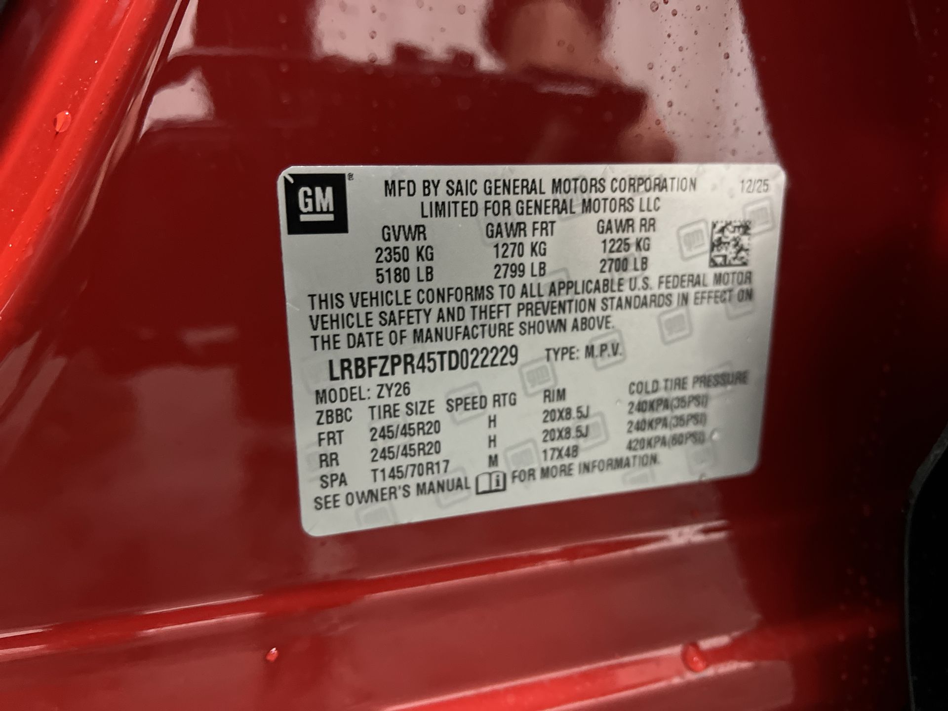 - Tires, P245/45R20 all-season