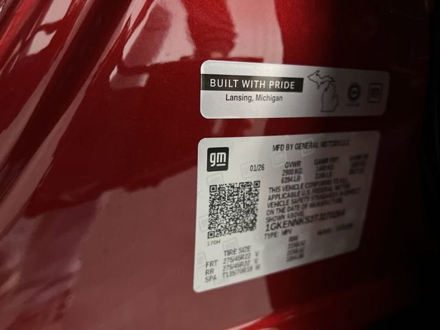 Volcanic Red Tintcoat 12 Speakers, 18 x 7.5 Aluminum Wheels, 1st & 2nd Row All-Weather Floor Liner (LPO), 3-Channel Programmable Universal Home Remote, 3.49 Final Drive Axle Ratio, 3rd Row All-Weather Floor Liner (LPO), 3rd row seats: split-bench, 4-Way Manual Front Passenger Seat Adjuster, 4-Wheel Disc Brakes, 6-Way Power Front Passenger Seat Adjuster, 7-Passenger Seating (2-2-3 Seating Configuration), 8-Passenger Seating (2-3-3 Seating Configuration), 8-Way Power Driver Seat Adjuster, ABS brakes, Air Conditioning, Alloy wheels, AM/FM radio: SiriusXM with 360L, Apple CarPlay/Android Auto, Auto High-beam Headlights, Automatic temperature control, Black Edition, Bodyside moldings, Bose Premium 12-Speaker System w/Sub-Woofer, Brake assist, Bumpers: body-color, Cloth Seat Trim, Compass, CoreTec Seat Trim, Delay-off headlights, Driver 2-Way Power Lumbar Seat Adjuster, Driver door bin, Driver vanity mirror, Dual front impact airbags, Dual front side impact airbags, Electronic Stability Control, Elevation Premium Package, Emergency communication system: OnStar Services capable, Exterior Parking Camera Rear, Floor Liner Package (LPO), Four wheel independent suspension, Front & Rear Black GMC Emblems (LPO), Front anti-roll bar, Front Bucket Seats, Front Center Armrest, Front dual zone A/C, Front fog lights, Front Passenger Power Lumbar Seat Adjuster, Front reading lights, Fully automatic headlights, Gloss Black Roof Rails, Heated door mirrors, Heated Driver & Front Passenger Seats, Heated front seats, Heated steering wheel, High Gloss Black Door Upper Moldings, Illuminated entry, Integrated Cargo Liner (LPO), Leather steering wheel, Low tire pressure warning, Navigation System, Occupant sensing airbag, Outside temperature display, Overhead airbag, Overhead console, Panic alarm, Passenger door bin, Passenger vanity mirror, Performance Suspension, Power door mirrors, Power driver seat, Power Liftgate, Power steering, Power windows, Radio data system, Radio: 15 Premium GMC Infotainment System, Rear air conditioning, Rear anti-roll bar, Rear reading lights, Rear seat center armrest, Rear side impact airbag, Rear window defroster, Rear window wiper, Remote keyless entry, Security system, SiriusXM w/360L, Speed control, Speed-sensing steering, Split folding rear seat, Spoiler, Sport steering wheel, Steering wheel mounted audio controls, Tachometer, Telescoping steering wheel, Tilt steering wheel, Traction control, Trip computer, Turn signal indicator mirrors, Variably intermittent wipers, Voltmeter, Wheels: 22 x 8.5 Gloss Black Aluminum. 2026 GMC Acadia Elevation AWD 8-Speed Automatic 2.5L DOHC Price includes $349 dealer added accessories.