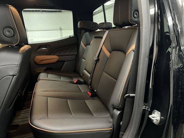 Onyx Black 120-Volt Bed Mounted Power Outlet, 1st and 2nd Rows All-Weather Floor Liner, 2 1st Row USB Charge/Data Ports, 2 Rear USB Ports in Center Console (Charge-Only), 3.42 Rear Axle Ratio, 4-Way Manual Front Passenger Seat Adjuster, 4-Wheel Disc Brakes, 6 Speakers, 6-Speaker Audio System Feature, 6-Way Power Passenger Seat Adjuster, 8-Way Power Driver Seat Adjuster, ABS brakes, Adaptive Cruise Control, Air Conditioning, Alloy wheels, AM/FM radio: SiriusXM with 360L, Apple CarPlay/Android Auto, AT4 Premium Package, Auto High-beam Headlights, Auto-dimming Rear-View mirror, Automatic Emergency Braking, Automatic Stop/Start, Automatic temperature control, Blind Zone Steering Assist with Trailering, Brake assist, Bumpers: body-color, Canyon Pro Safety, Canyon Safety Plus Package, Cloth/CoreTec Seat Trim, Compass, Delay-off headlights, Deleted Mobile Service Plus, Driver and Front Passenger Illuminated Visors, Driver and Front Passenger Ventilated Seats, Driver door bin, Driver Memory, Driver Mode Selector, Driver Seatback Map Pocket, Driver vanity mirror, Dual front impact airbags, Dual front side impact airbags, Dual-Zone Automatic Climate Control Air Conditioning, Electronic Stability Control, Emergency communication system: OnStar, EZ-Lift and Lower Tailgate, Following Distance Indicator, Forward Collision Alert, Front anti-roll bar, Front Bucket Seats, Front Center Armrest, Front dual zone A/C, Front fog lights, Front LED Fog Lamps, Front License Plate Kit, Front Passenger Seatback Map Pocket, Front Pedestrian and Bicyclist Braking, Front reading lights, Front wheel independent suspension, HD Surround Vision, Heated door mirrors, Heated Driver and Front Passenger Seats, Heated front seats, Heated Steering Wheel, Illuminated entry, Inside Rear-View Auto-Dimming Mirror, IntelliBeam Automatic High Beam on/Off, Interior Overhead Courtesy Light with Dual Reading Lamp, Laminated Windshield Acoustic Glass, Lane Keep Assist with Lane Departure Warning, Low tire pressure warning, Multicolor 6.3 Diagonal Head-Up Display, MultiStow Tailgate Storage Compartment, Navigation System, Occupant sensing airbag, Off-Road Suspension, Outside temperature display, Overhead airbag, Overhead console, Panic alarm, Passenger door bin, Passenger vanity mirror, Perforated Leather-Appointed Seat Trim, Power door mirrors, Power Driver Lumbar Control Seat Adjuster, Power driver seat, Power Inner Sliding Glass Sunroof with Manual Shade, Power Passenger Lumbar Control Seat Adjuster, Power steering, Power windows, Preferred Equipment Group 4SG, Premium 7-Speaker Bose Sound System, Radio data system, Radio: 11.3 Diagonal Premium GMC Infotainment System, Rear Center Fold-Down Armrest with 2 Cupholders, Rear Cross Traffic Braking, Rear of Console 120-Volt Power Outlet, Rear Pedestrian Alert, Rear reading lights, Rear step bumper, Rear window defroster, Remote keyless entry, Remote Vehicle Starter System, Security system, SiriusXM with 360L, Speed control, Speed-sensing steering, Split folding rear seat, Spray-on Bedliner with GMC Logo, Steering wheel mounted audio controls, Stop/Start System Disable Button Engine Control, Tachometer, Tailgate Keyed Cylinder Lock, Technology Plus Package, Telescoping steering wheel, Til and Telescopic Manual Steering Column, Tilt steering wheel, Traction control, Trip computer, Ultrasonic Rear Park Assist, Variably intermittent wipers, Wheels: 18 x 8.5 Gloss Black Aluminum, Wireless Apple CarPlay/Wireless Android Auto, Wireless Phone Charging. 2026 GMC Canyon AT4 4WD 8-Speed Automatic 2.7L I4 Turbocharged DOHC 16V LEV3-SULEV30 310hp