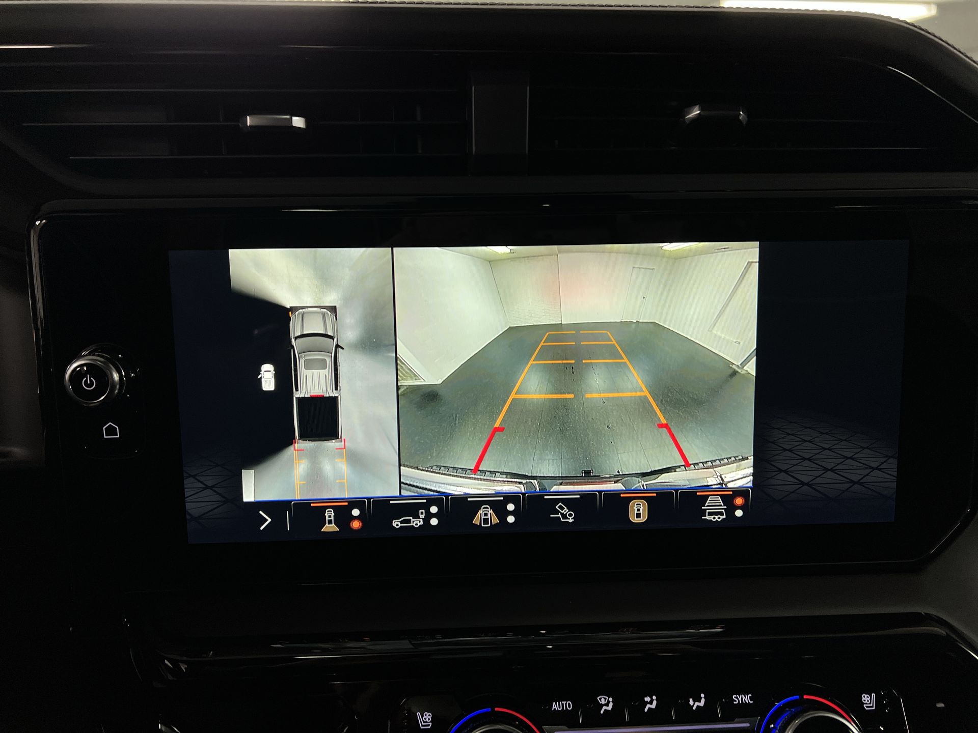 - Allows driver to see inside the cargo bed on the infotainment display to help with 5th wheel or gooseneck hitching and to check cargo