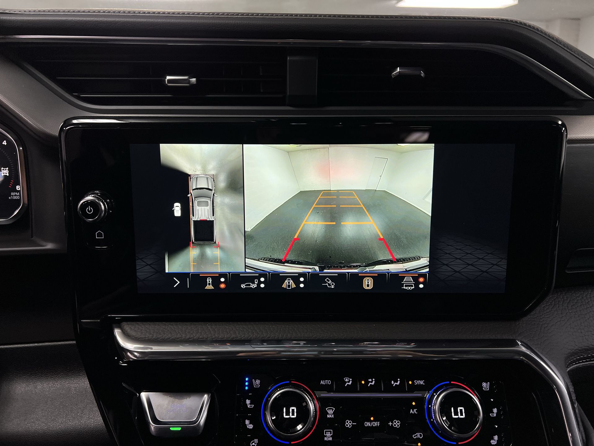 - Allows driver to see inside the cargo bed on the infotainment display to help with 5th wheel or gooseneck hitching and to check cargo